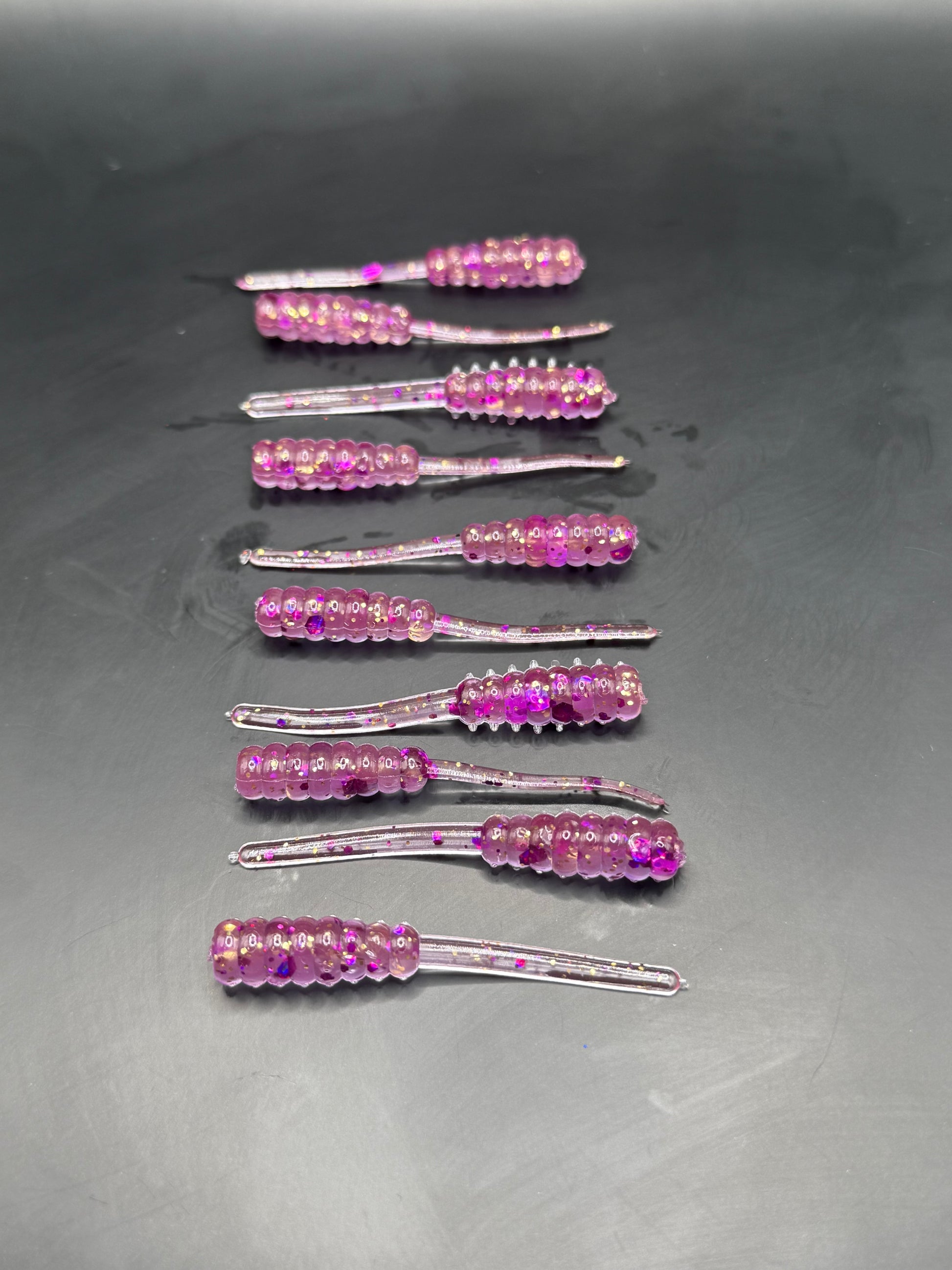 Sweet, sleek, and oh-so-effective—meet the Trout Taffy, a 2" trout jig that packs serious punch in a small package. Featuring a unique design, the body consists of small, round balls that give the lure a subtle, lifelike wobble with every twitch, mimicking the movement of small prey that trout can’t resist. The thin tail follows the body with an elegant flutter, creating an irresistible, natural presentation that entices even the most cautious fish.