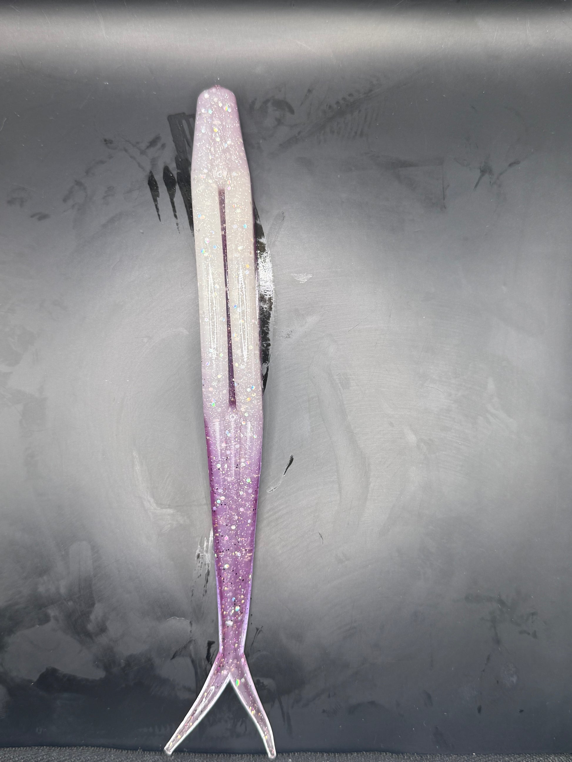 Similar to our Squid color, our Pearl Squid uses the same type of Flakes but with the added, whitish/Pearl undertone. Great choice to have in the arsenal for catching large white sea bass, halibut, stripped bass, and Yellowtail. These Baits are 8" long and very Bulky. You will need a Big HOOK!