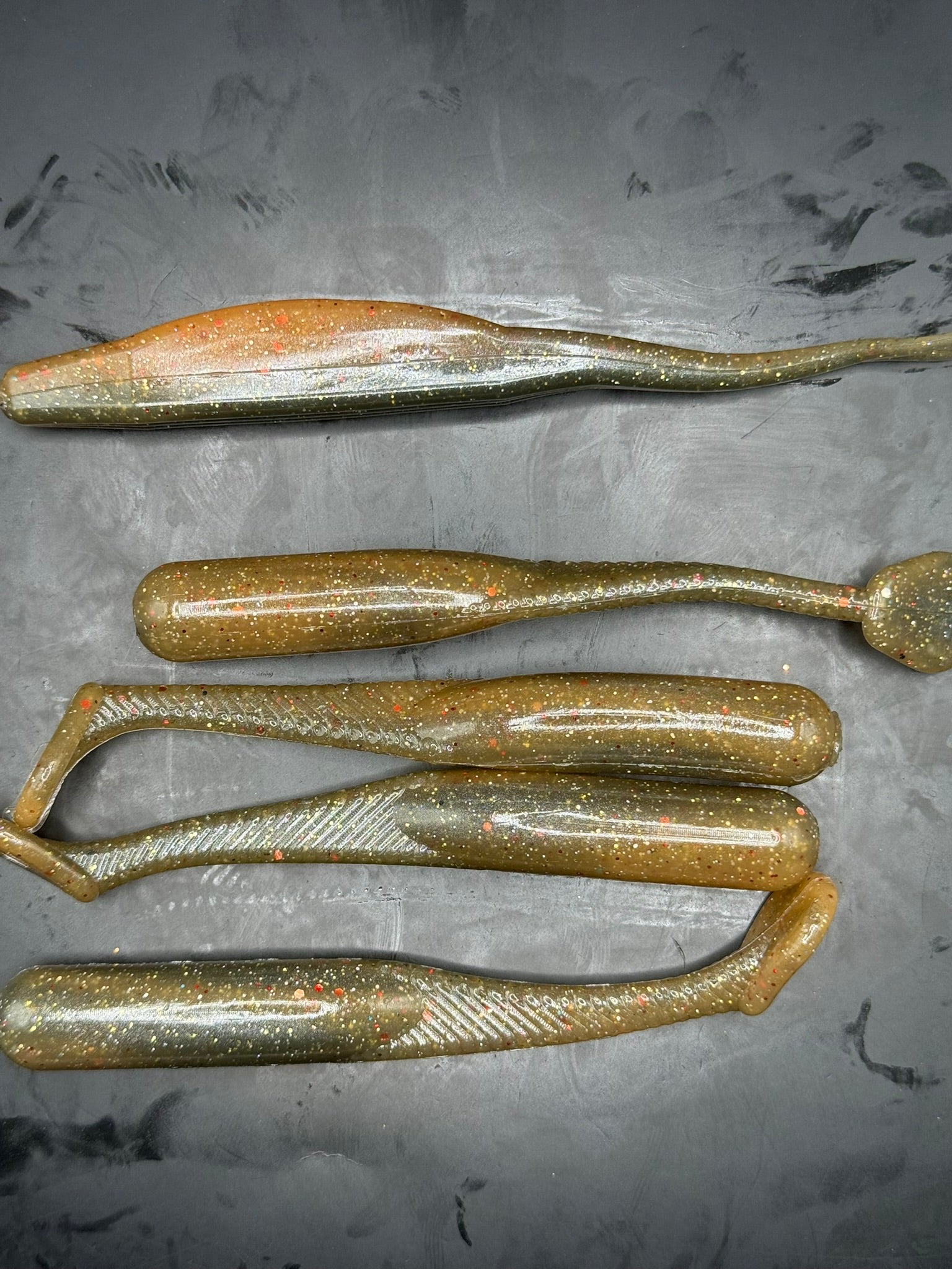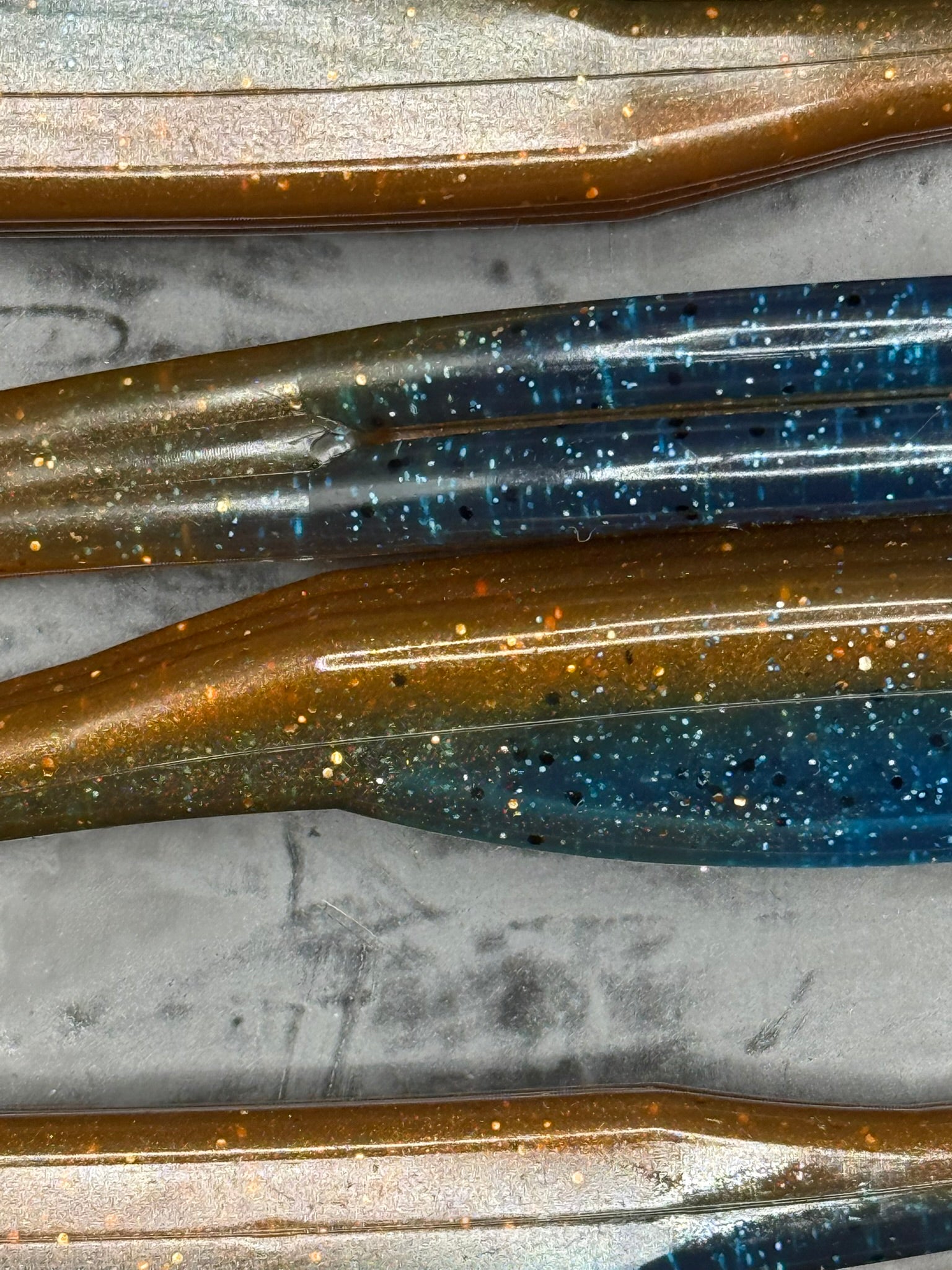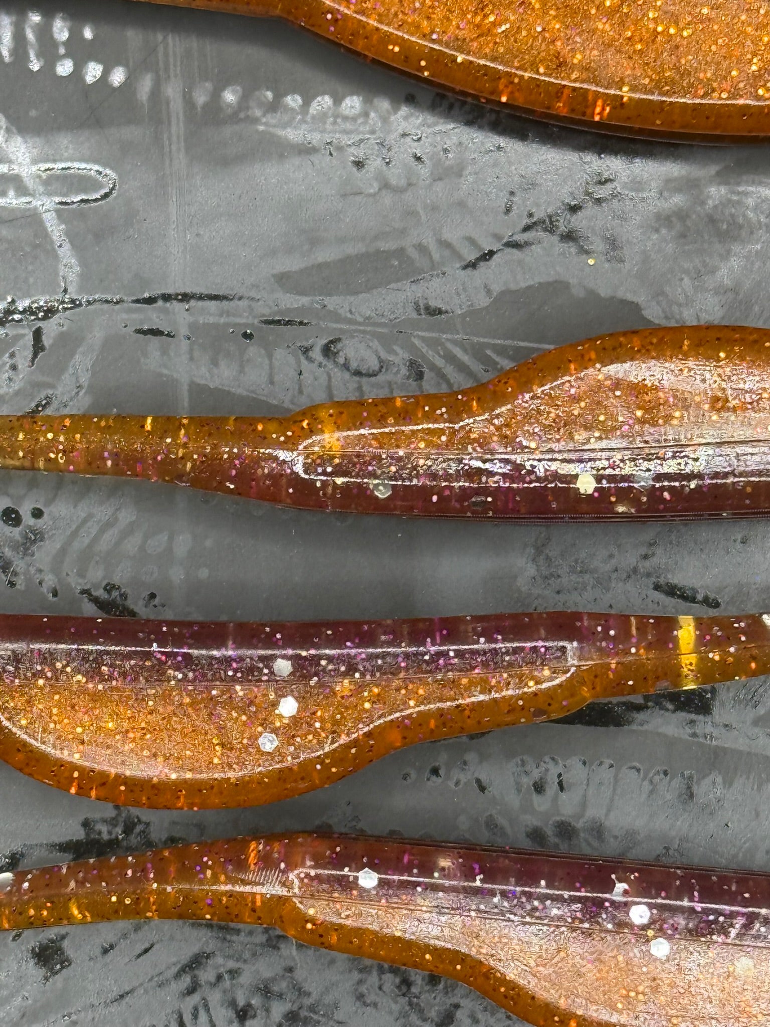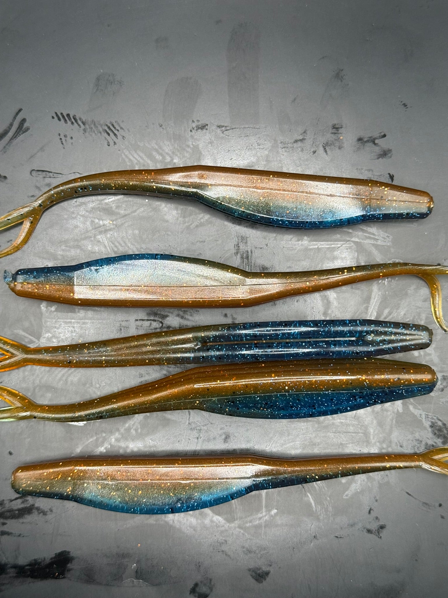 Custom-melted, one-of-a-kind swimbaits and flukes made from production excess.