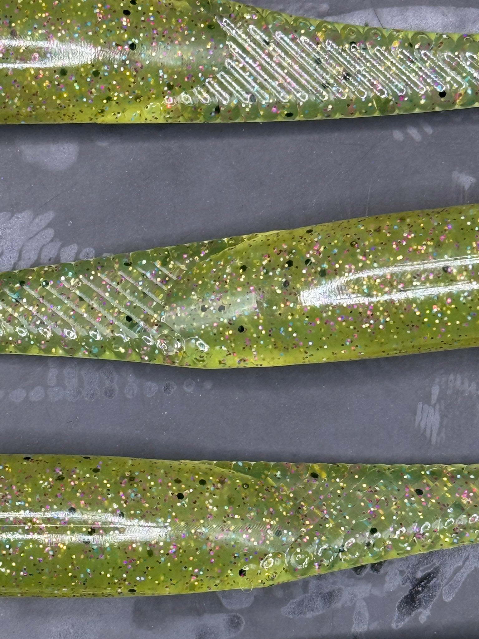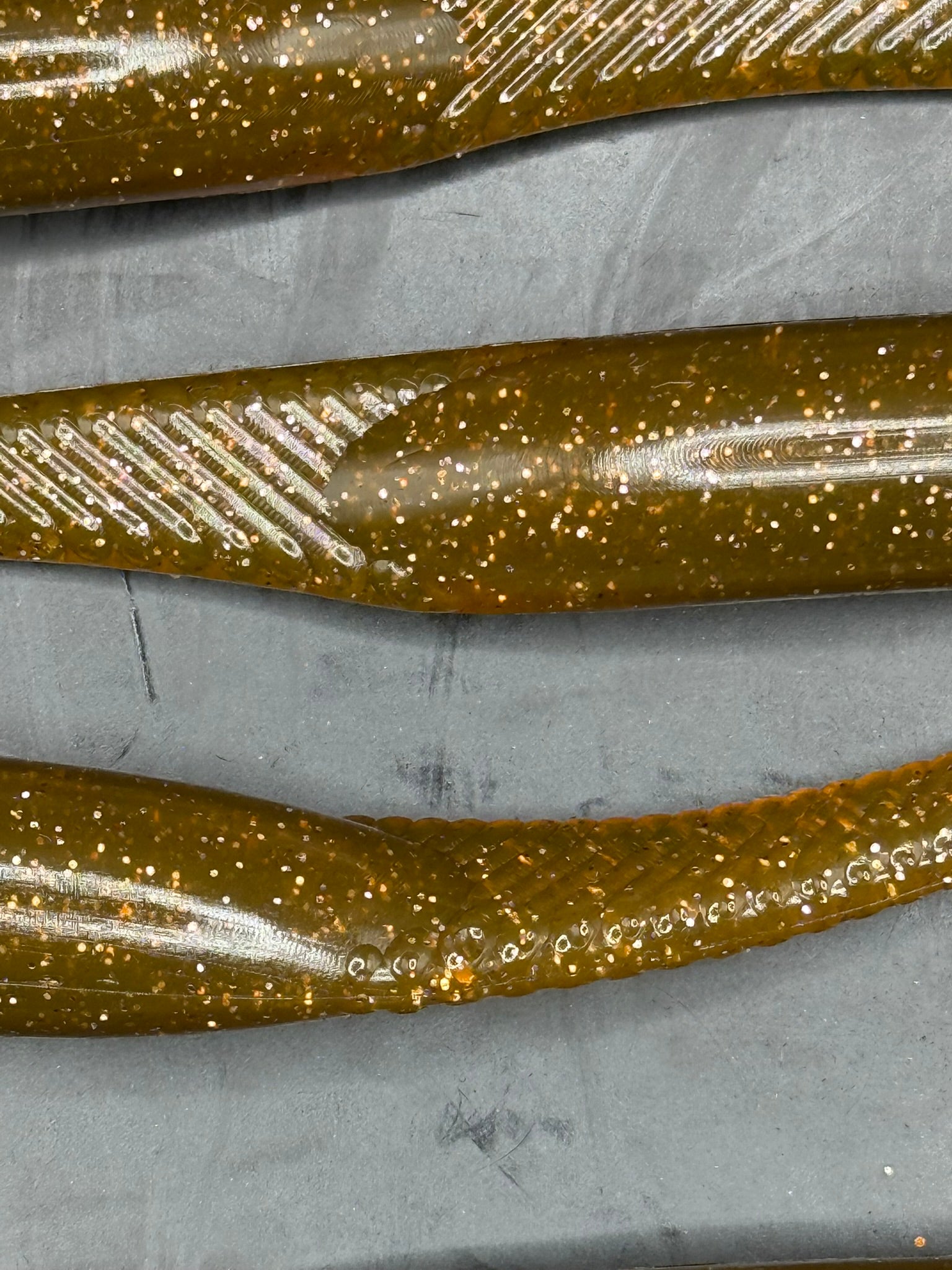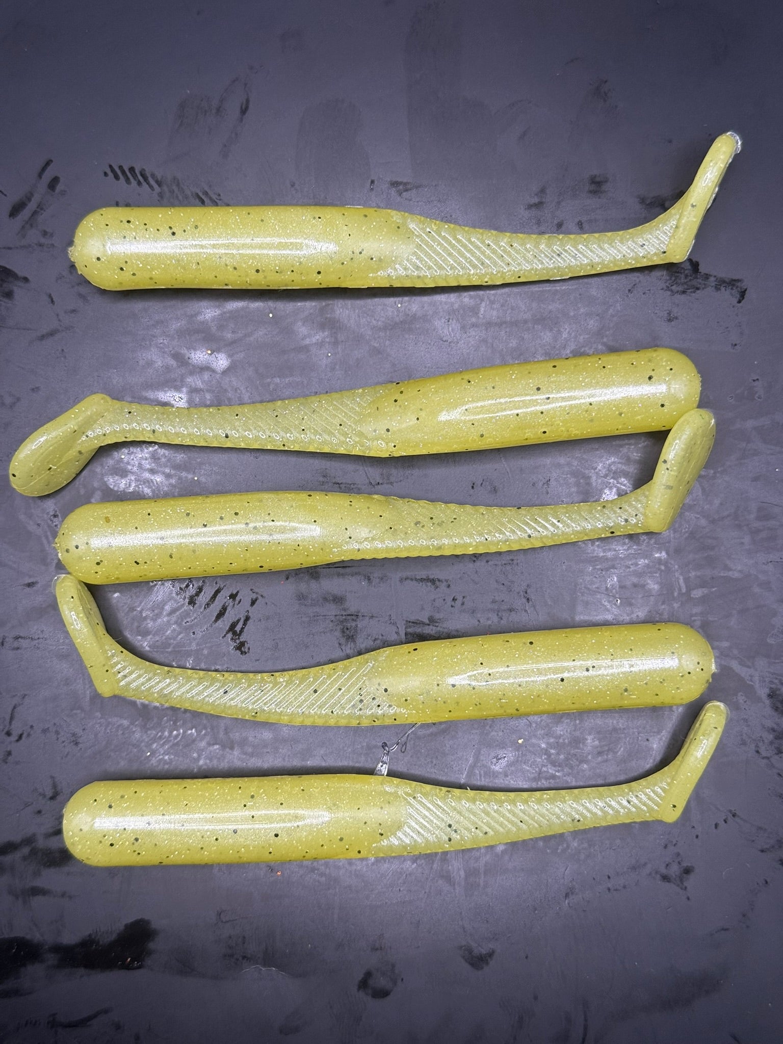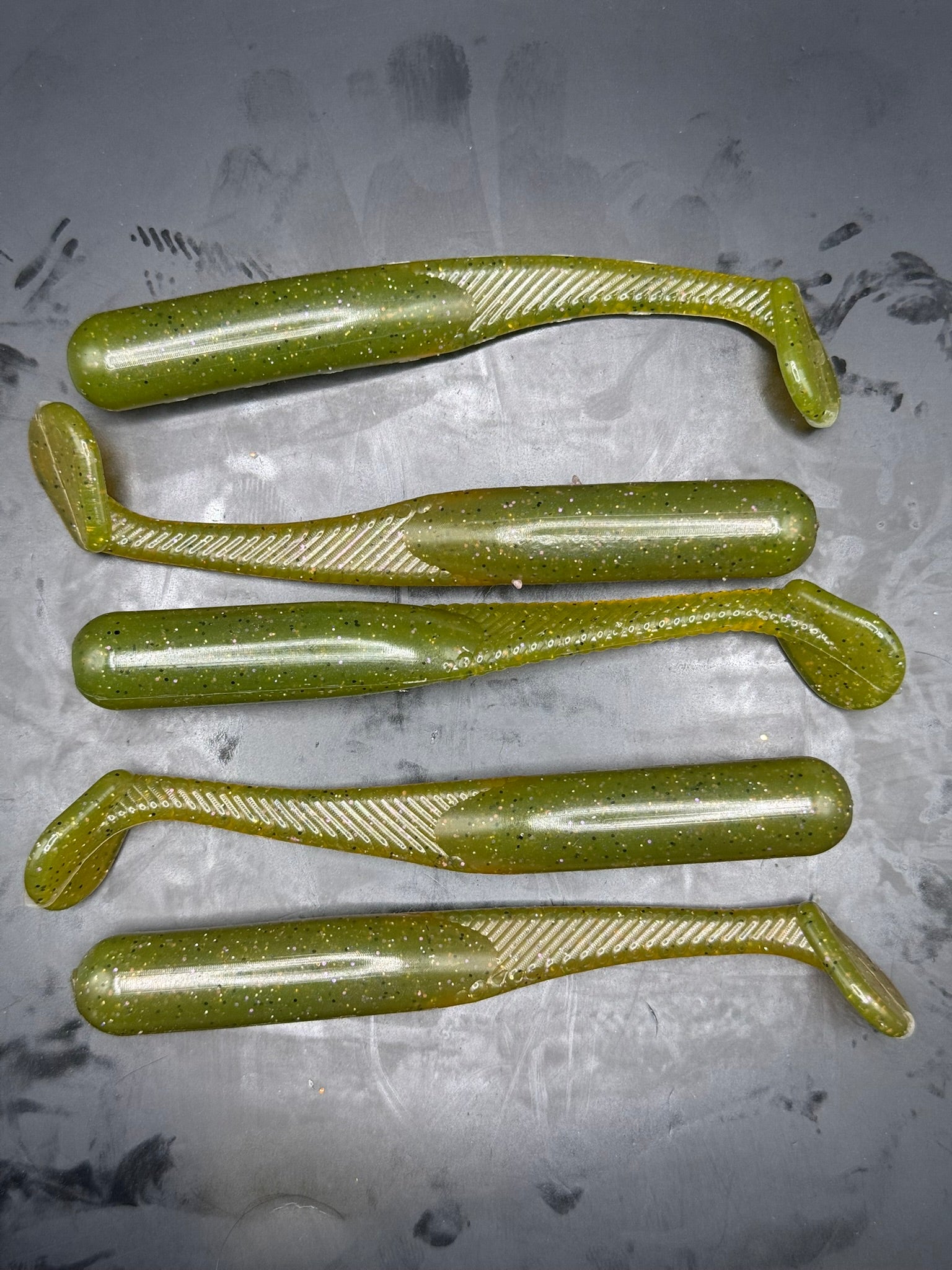 Custom-melted, one-of-a-kind swimbaits and flukes made from production excess.
