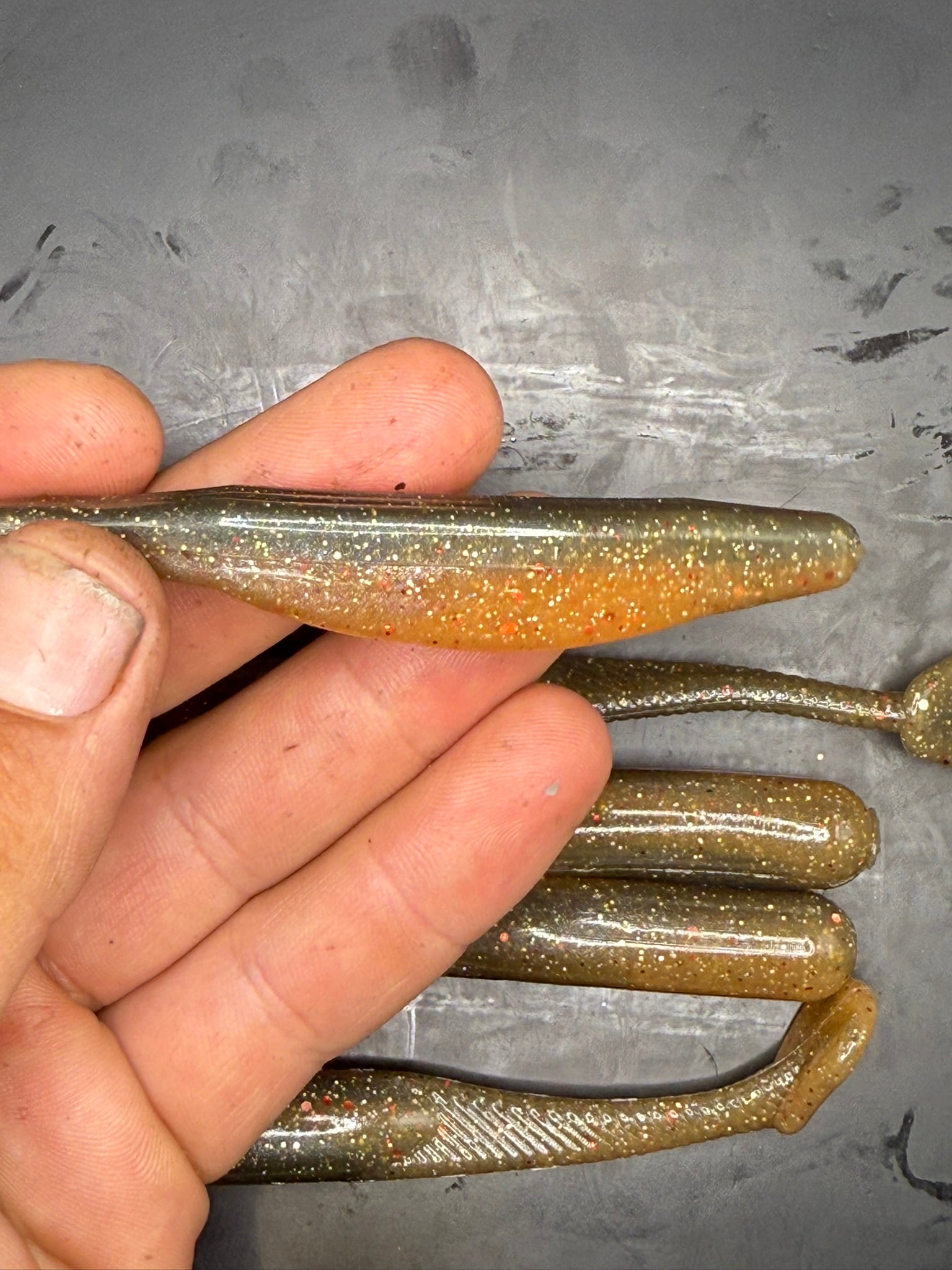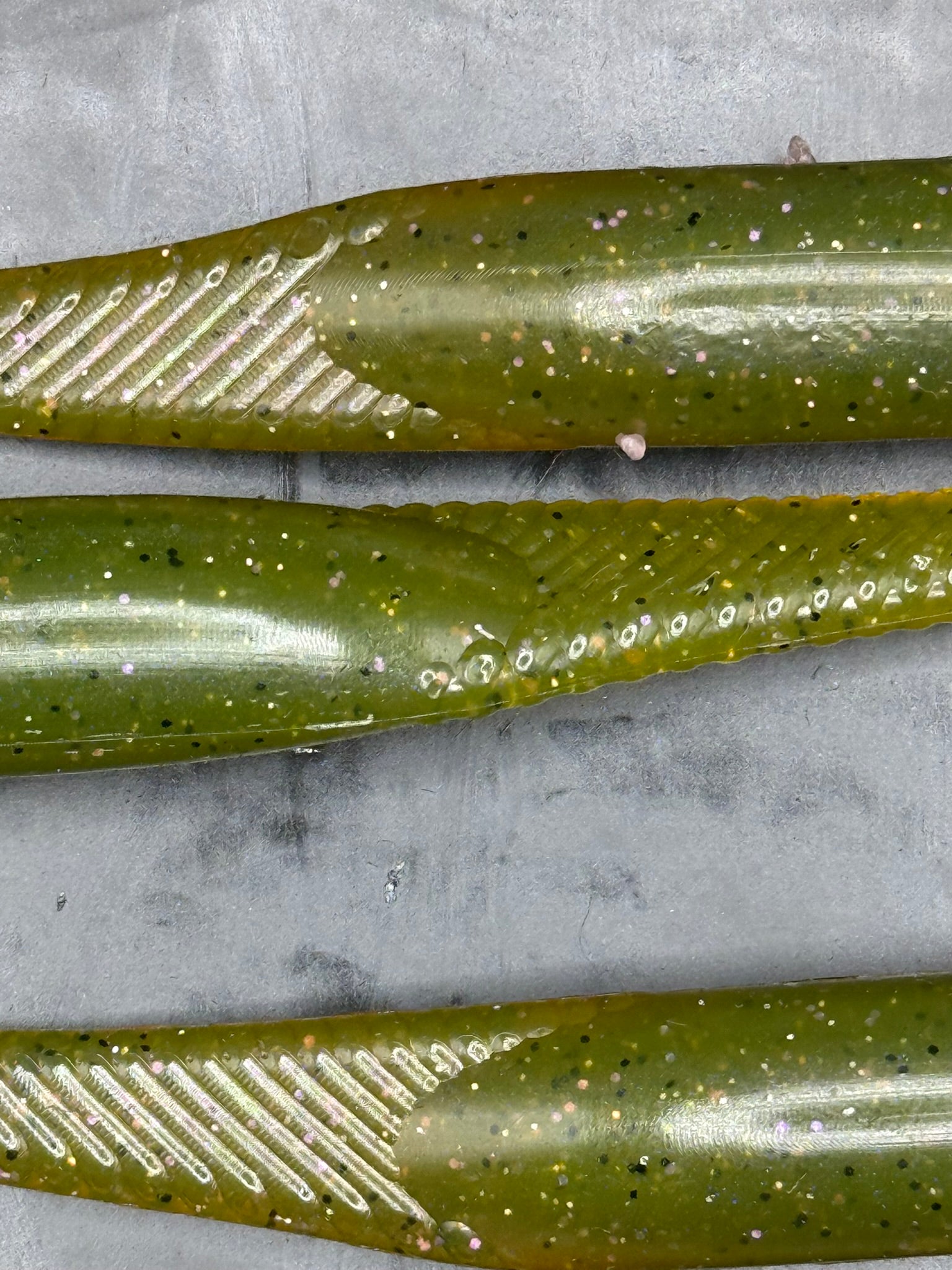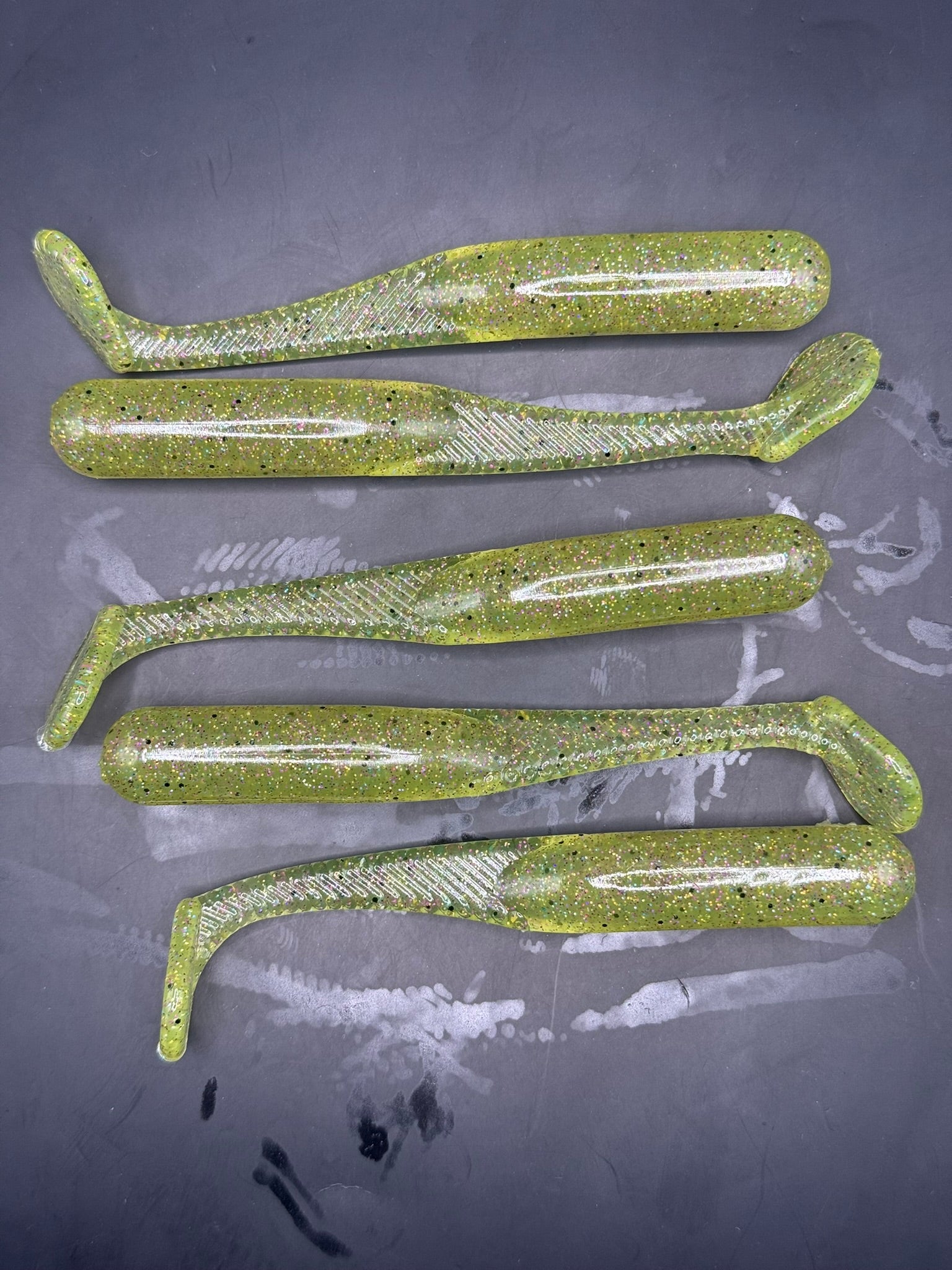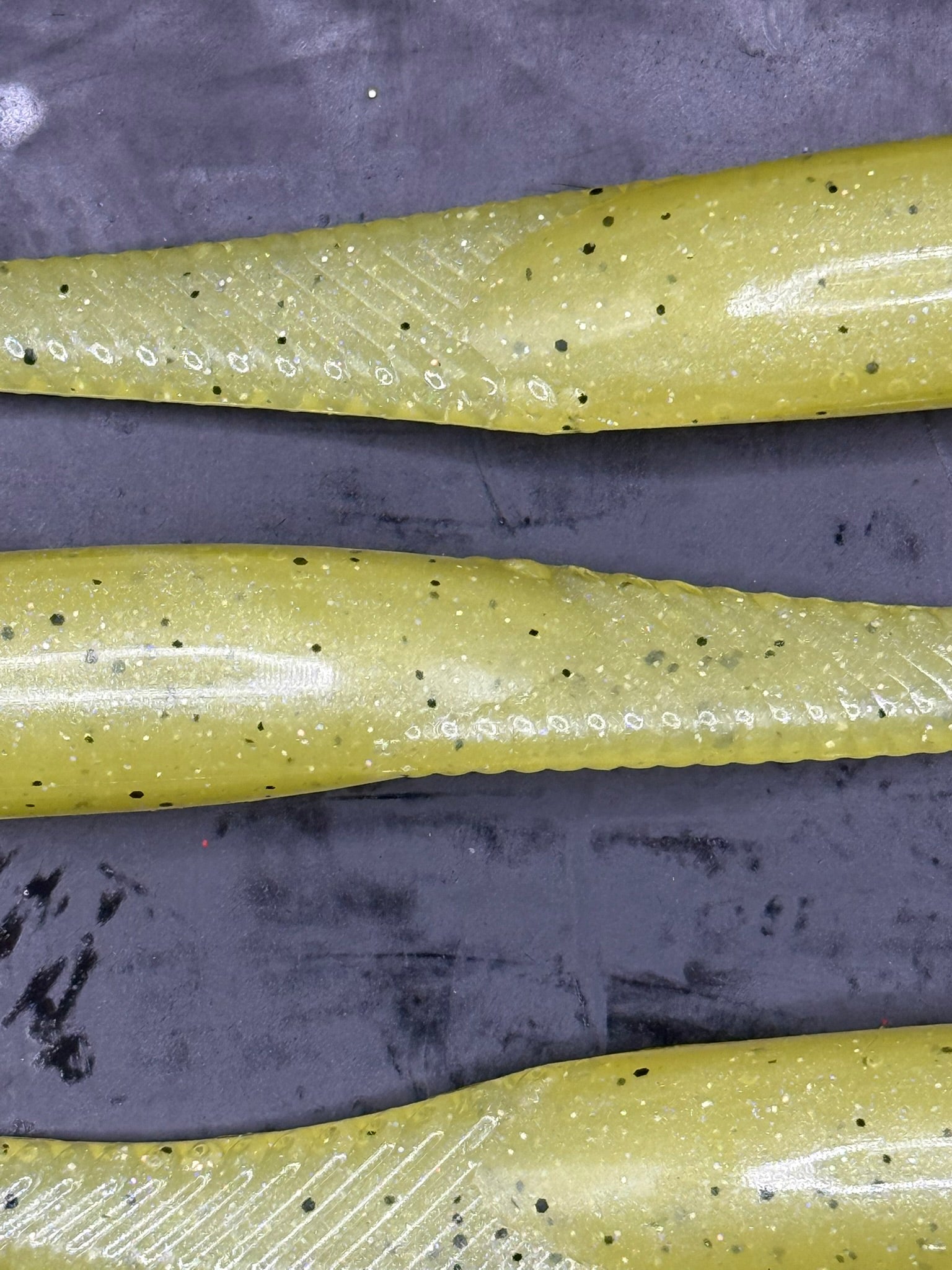 Custom-melted, one-of-a-kind swimbaits and flukes made from production excess.